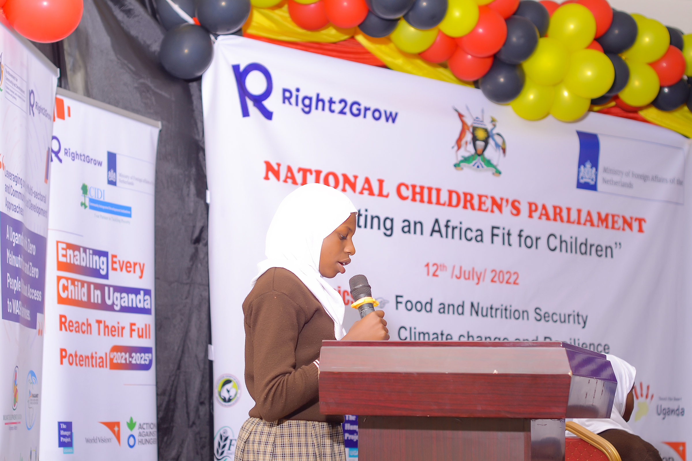 "Nous tenons ce Parlement national des enfants à un moment où des enfants meurent de faim dans la sous-région Karamoja en Ouganda, et où les prix des denrées alimentaires et du carburant sont très élevés.Ilest important de faire entendre la voix et les aspirations des enfants au centre de notre planification et de notre budgétisation nationales, afin d'avoir un programme de développement qui tienne compte des besoins uniques de tous les enfants et jeunes gens",a noté M. Gerald Kato, coordinateur national de l'Ouganda ( Right2Grow ), lors de son allocution de bienvenue au Parlement national des enfants, qui s'est tenu le 12 juillet 2022.