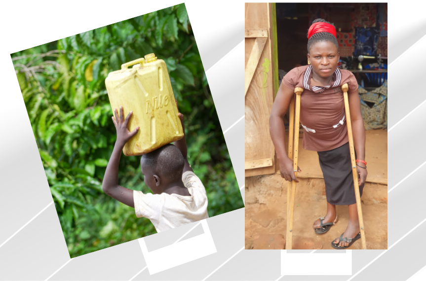 Mutesi Zainabo, a 27-year-old woman with disabilities lives with her two children of age 8 and 5. Her children have to walk around 4Km to fetch water that the family depends on to drink, cook food, bathe and wash their clothes as well as irrigate their plants. The water is dirty and she has to boil it before use. To collect enough water, her children make around 4 trips a day. During school time, the family lives with less or no water since the children juggle between school and fetching water.